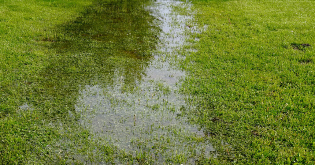Healthy lawns absorb rainfall quickly. If puddles remain a day after a storm, your soil may be compacted or the yard may not be graded properly.